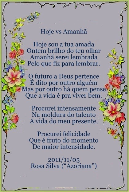 minhas_coletâneas Hoje vs Amanhã (talvez) 05.11.11 | Rosa Silva ("Azoriana") Tags:minhas_coletâneaspessoais_da_azorianapessoais_soneto_ou_sonetilho link comentar favorito