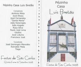 Pelas 20:45 será orador o nosso cantador José Eliseu Costa; 21:05 ACTDA Associação dos Cantadores e Tocadores ao Desafio dos Açores; 21:10 Representante da Câmara Municipal de Angra do Heroísmo; 21:20 Representante do Governo Regional dos Açores; 21:30Luís Bretão; 21:40 Entrega de lembranças a Luís Bretão (por Sr. José Fonseca de Sousa e Sr. João Ângelo) 21:50 Todos os Cantadores e Tocadores presentes subirão ao palco [7] para na moda do Pezinho darem a despedida.